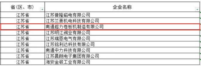 近日,江蘇省工信廳發布《關于江蘇省第五批專精特新“小巨人”企業和第二批專精特新“小巨人”復核通過企業名單的公示》。我們南通超力卷板機制造有限公司上榜第五批國家級專精特新“小巨人”企業名單。